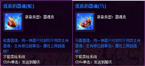 6、增加了器魂碎片兔、龙的掉落,击杀70级以上世界BOSS即可获得。新增了器魂碎片蛇、马,可在商城购买获得