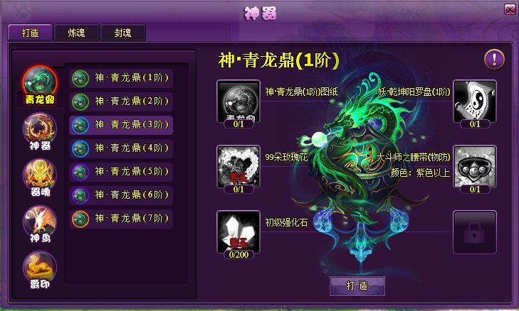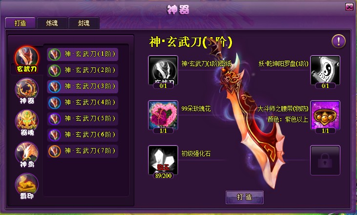 【神器】界面中的【主神器】、【神器】、【器魂】、【炼魂】、【封魂】功能开启条件:斗皇境界;