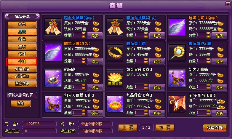 10、在『商城』界面的【个性】中增加护心镜、手镯道具的售卖。