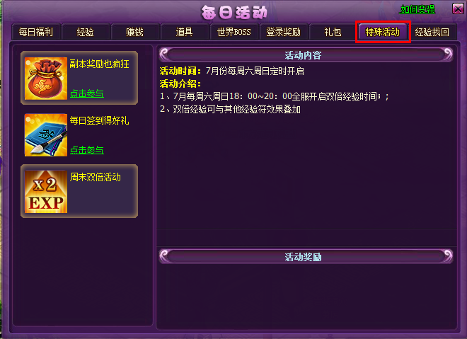 7、活动面板新增——特殊活动页,方便查询当前版本的特殊活动