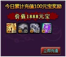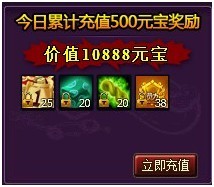 11、 调整了每日累计充值奖励内容,取消每日累计充值奖励中2000元宝的奖励,增加每日累计充值200元宝的奖励内容。