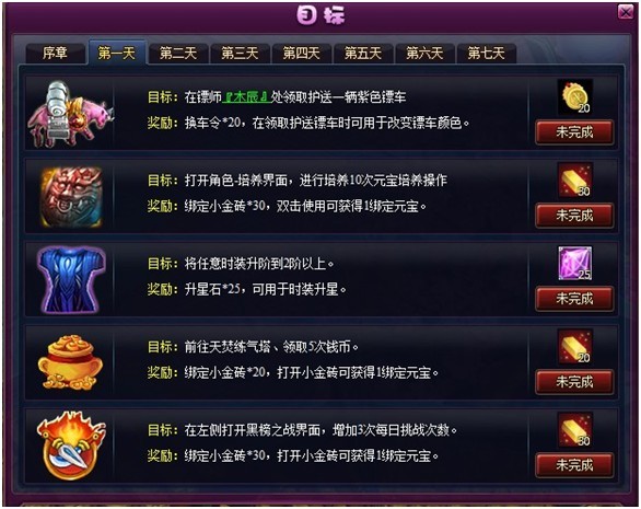 1、 优化了【目标】系统界面中,前七天的目标奖励。版本更新后,老玩家需要重新做完任务才能完成目标。