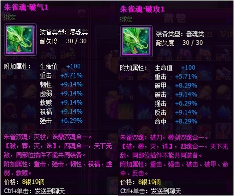 a) “灭杖”和“诛鼎”的器魂可以二合一为“神魂?破气”;“破刀”和“葬剑”的器魂可以二合一为“神魂?破攻”(注:两种器魂属性升满才可以合成神魂)