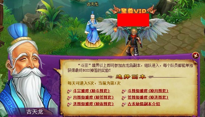 1. NPC古天龙新增了古龙岛的月尊,荒尊,洪尊境界难度,分别掉落荒尊,洪尊,宙尊紫色以下套装;