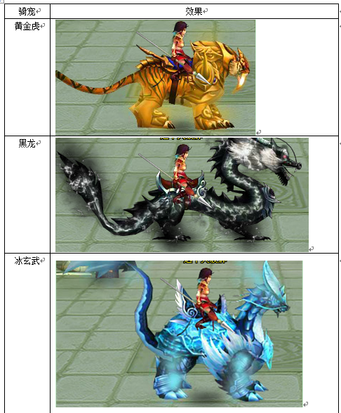 6.          使用骑宠获得对应的骑宠属性和可幻化形象。