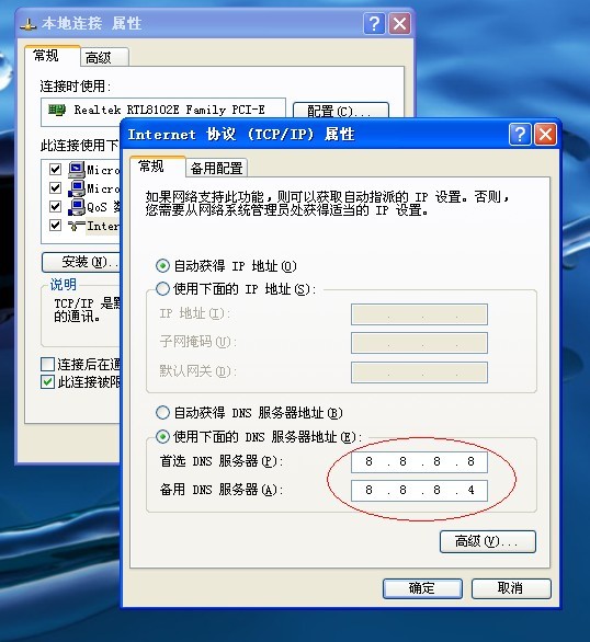选择使用下面的DNS服务器地址,首选的DNS服务器地址依次为:8.8.8.8,备用的DNS服务器地址依次为:8.8.8.4