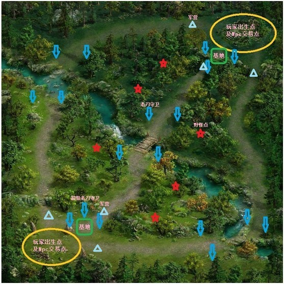 3.战场双方玩家加入时都出现在地图中黄色圈内