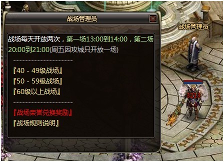 打开战场管理员对话面板,点击“战场荣誉兑换奖励”
