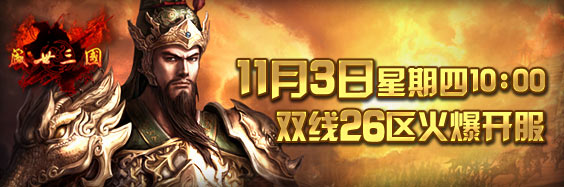陪游《盛世三国》26区将于11月3日上午10:00震撼开启,与此同时,我们还为各位玩家准备了丰富的活动和好礼,助英雄们驰骋沙场!